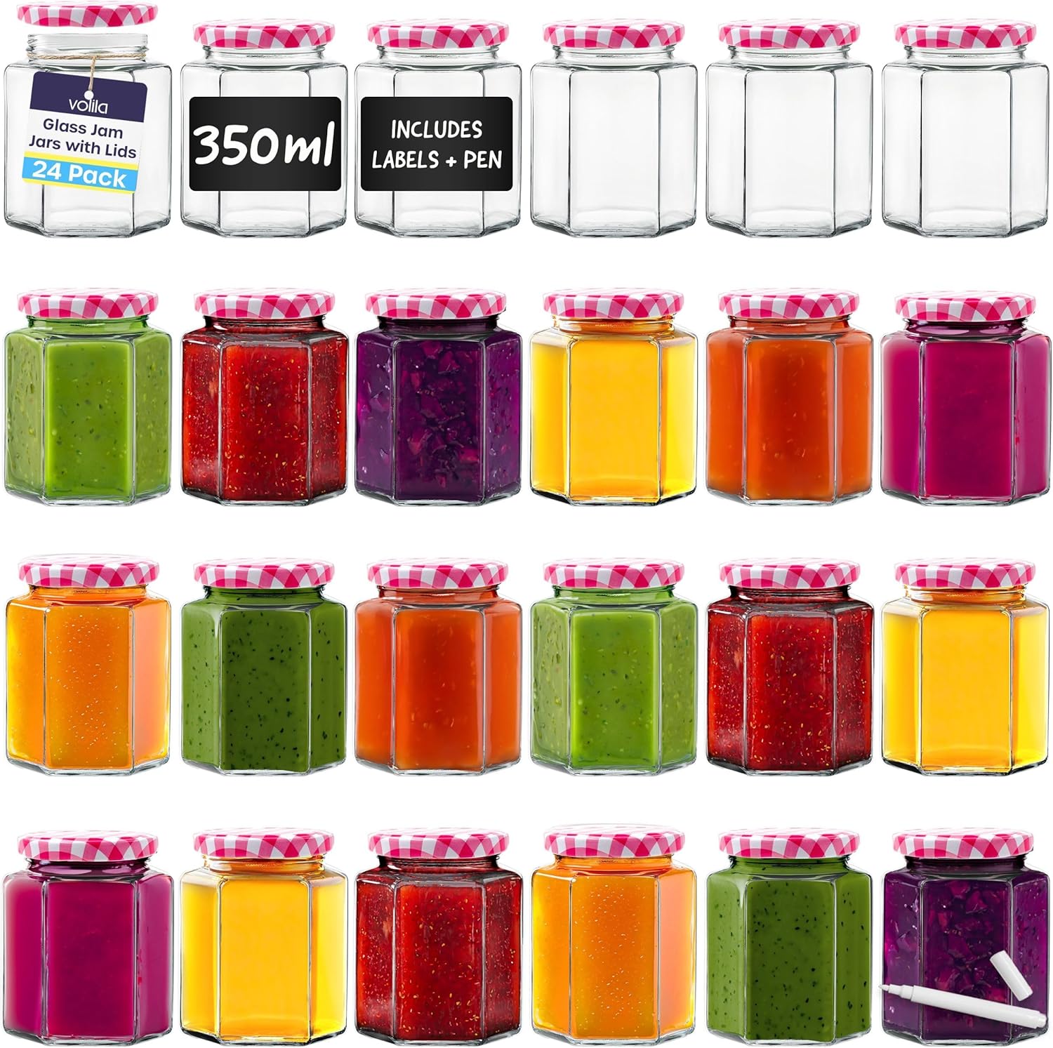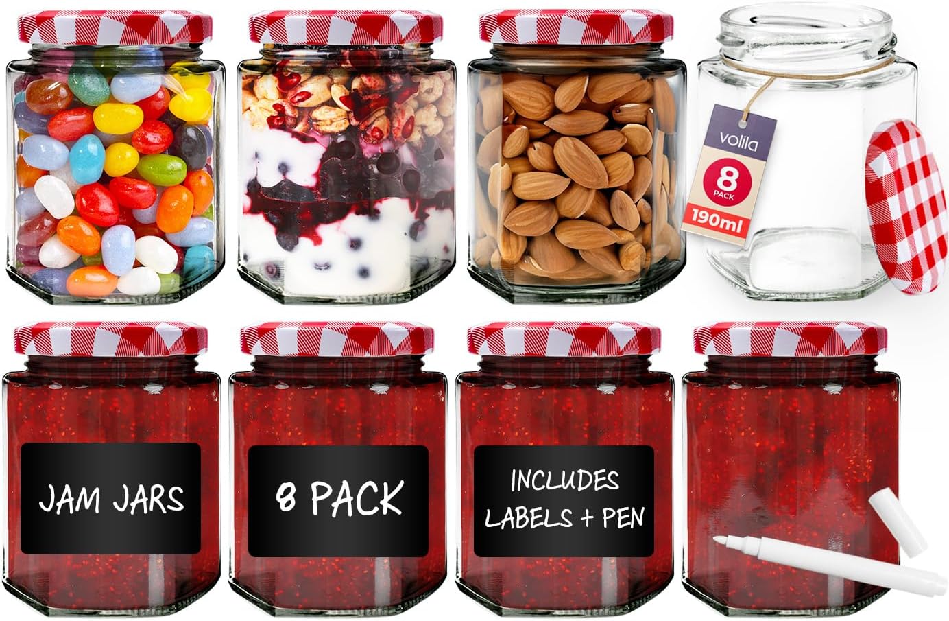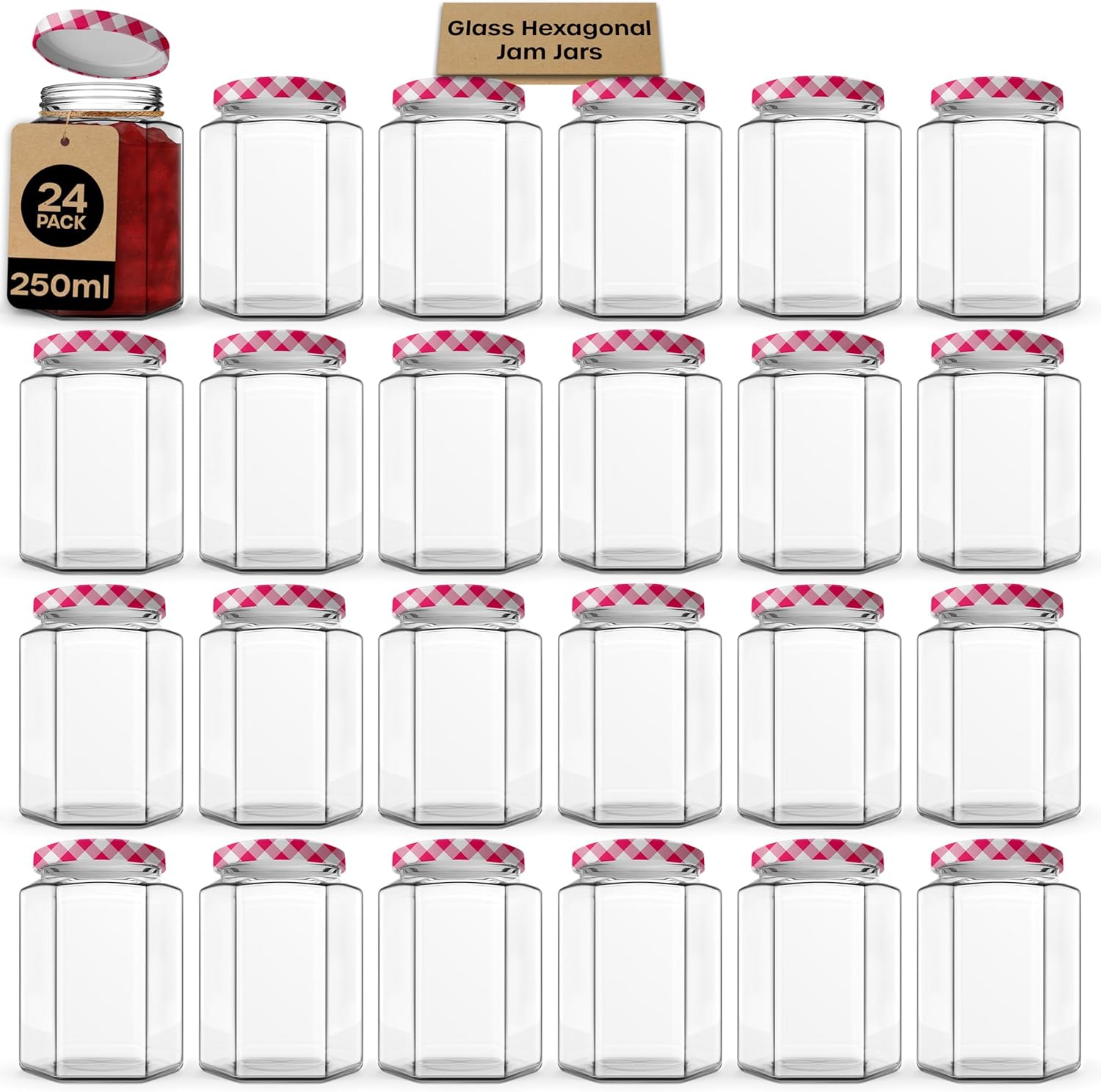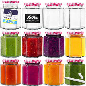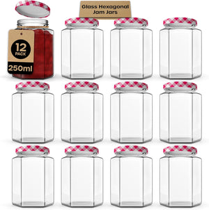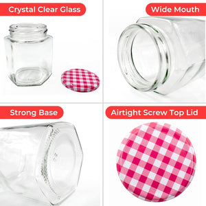 Jam Jars with Lids - Hexagonal or Round Jam Jars with Lids - Airtight Jars with Lid for Jam, Preserves, Marmalade and Pickle - Preserving Jars