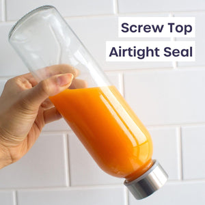 - 💪【 Leakproof and Easy to Clean 】 These glass water bottles come with airtight metal caps that ensure a secure, leakproof seal. This makes them ideal for transporting liquids without the worry of spills or leaks. The glass bottles also includes a cleaning brush that makes it easy to thoroughly clean the inside of the bottles, ensuring they stay hygienic and ready for the next use.