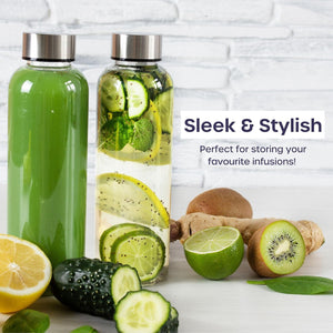 - ✨【 Style & Practicality 】 The clear glass bottles offers a sleek and modern look, while also allowing users to easily see the contents. The juice bottles are also designed to fit comfortably in most refrigerator doors and cup holders. Glass is a non-reactive material, which means it does not leak chemicals into the beverage, unlike some plastic bottles. This glass water bottle 500ml ensures that the beverages stay pure and free from contaminants.