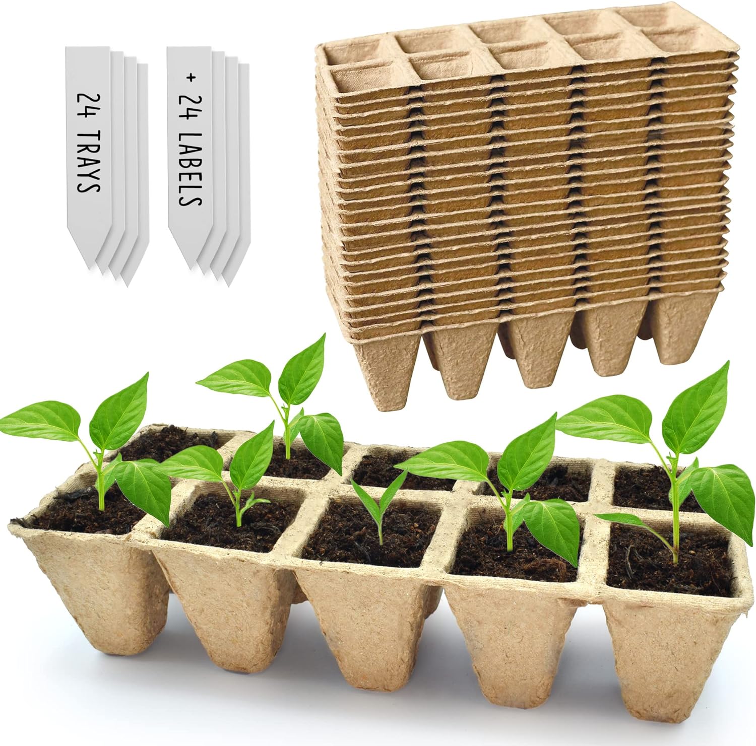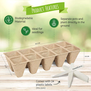 - Each tray comes with 10 pots to plant seeds into. It also comes with plastic labels in order to label your plants/seeds accordingly. The paper cup body becomes organic fertilizer after degradation, making it easy to absorb water, has good air permeability, and is easy to integrate with the soil, improving the growth of seedlings.