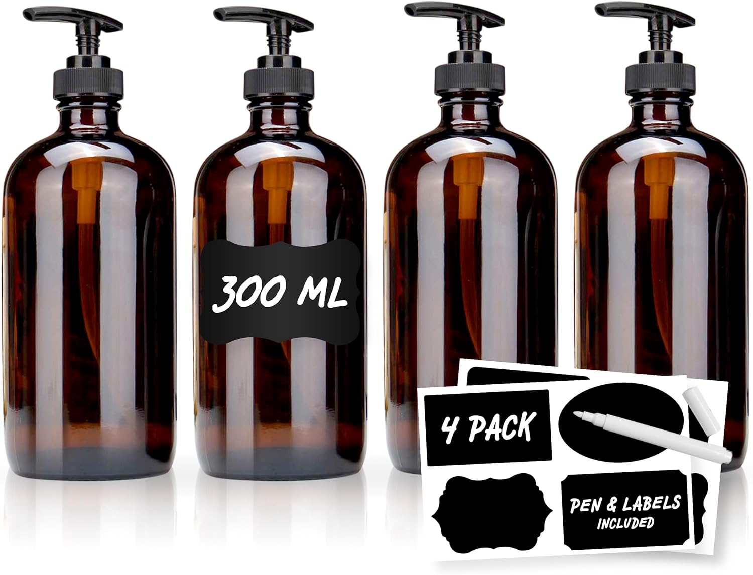 - This set comes with 4 Plastic Black Bottles which means if you have a bulk sized purchased soap, or homemade soap, you can fill up the bottles. This set also includes a chalk pen and reusable stickers.You can label the contents of the bottle from soap to creams, or just jot down the name of the room that the bottles belong.