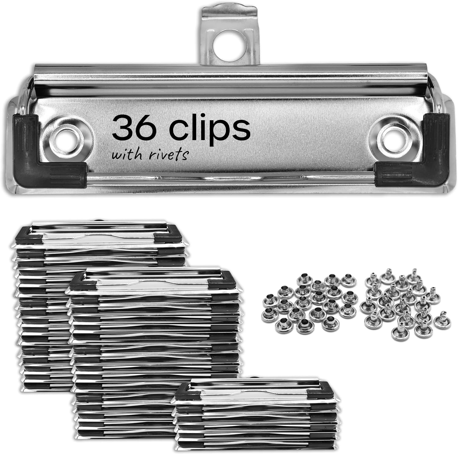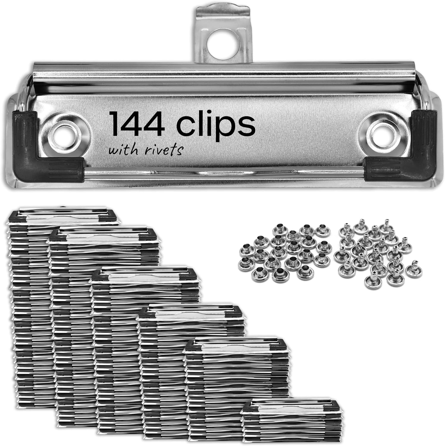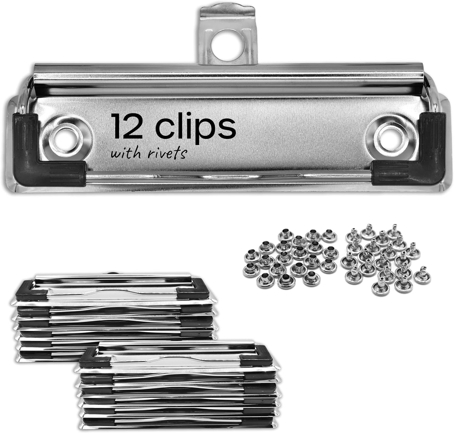 - The Clipboard Spring Clips come in a pack of 12 with rivets included. The dimensions are 10cm x 3cm. Perfect for schools or DIY craft projects. They are easy to install and hassle free to use!