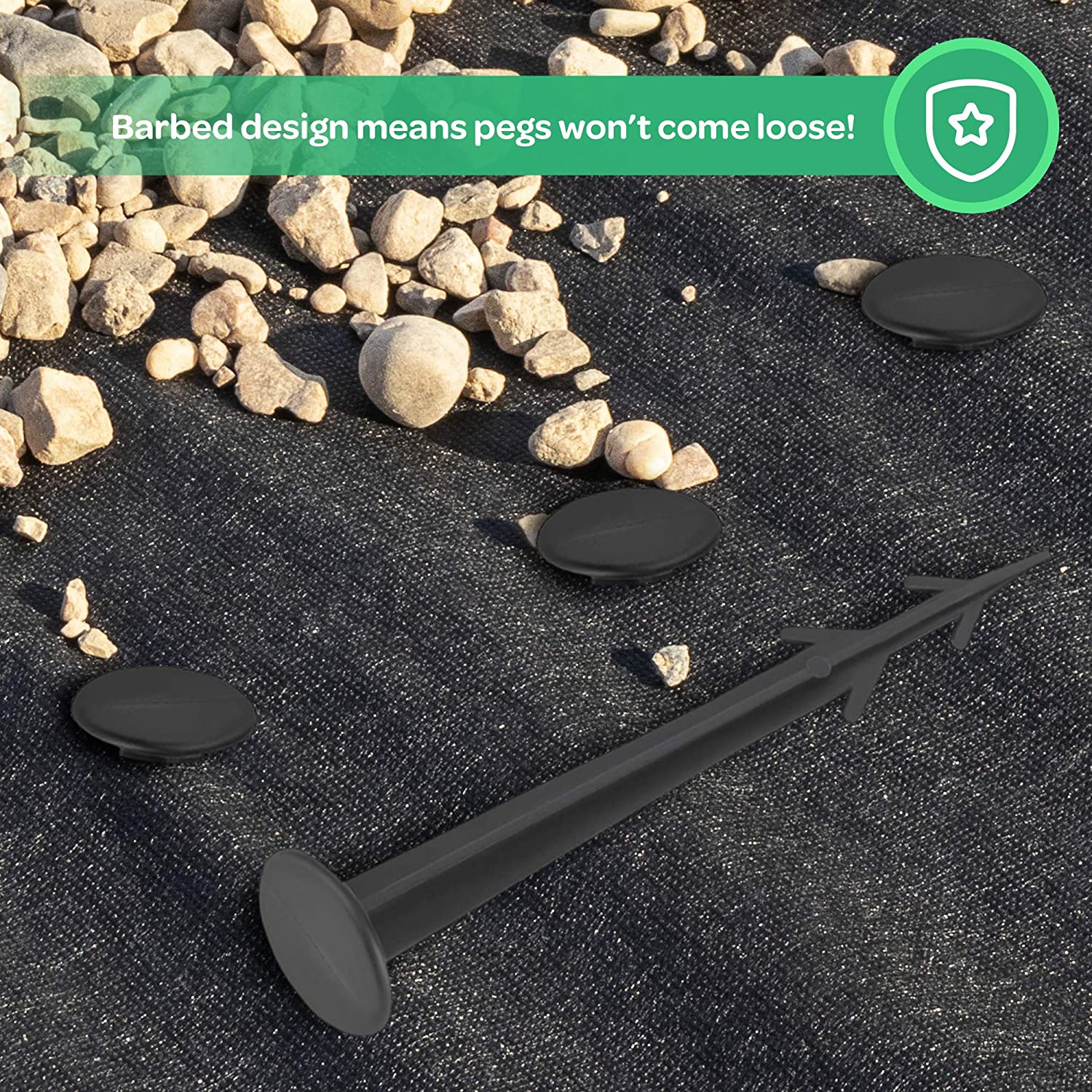 - Strong, Durable Plastic - the 12cm long Plastic Landscaping Pegs are made from thick plastic that will last. Weather resistant and stabilising, our quality Weed Fabric Pegs will ensure your fabric stays put. Plastic Ground Pegs are often flimsy and low quality. We've solved this problem with Weed Matting Pegs that truly work.