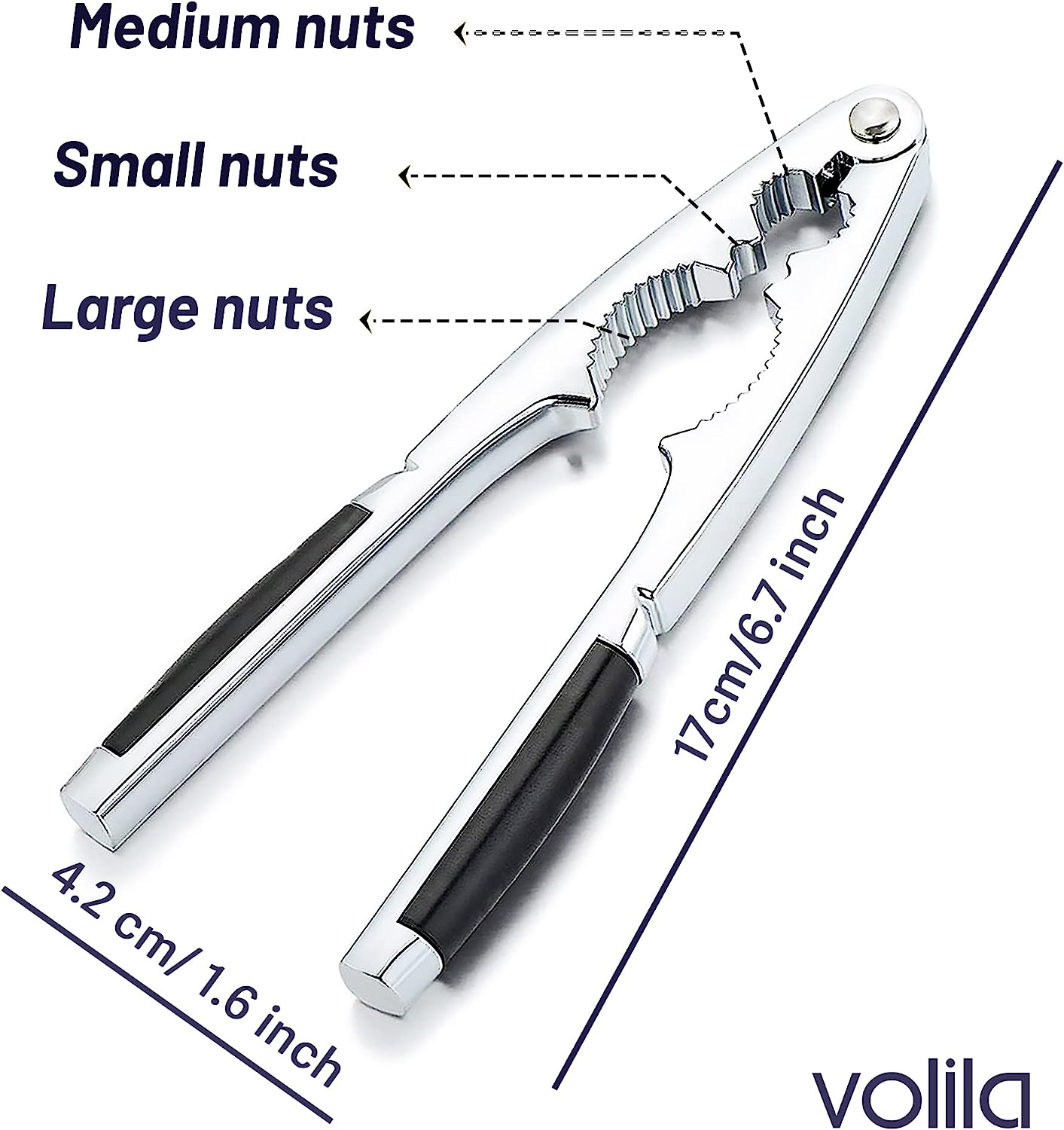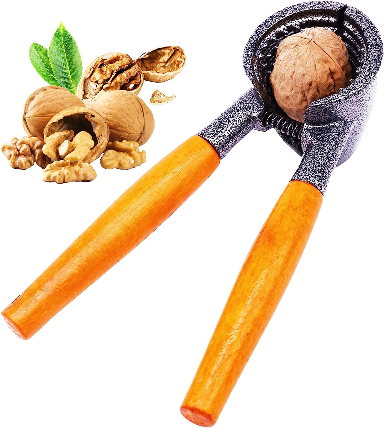 - 【 For All Kinds of Nuts 】Our heavy duty metal nut cracker is the best choice for all types of nuts. The mechanical advantage with using our nut crackers tool is that the force you use to squeeze the handles is magnified five times - making it strong enough to crack very hard shells without breaking a sweat.