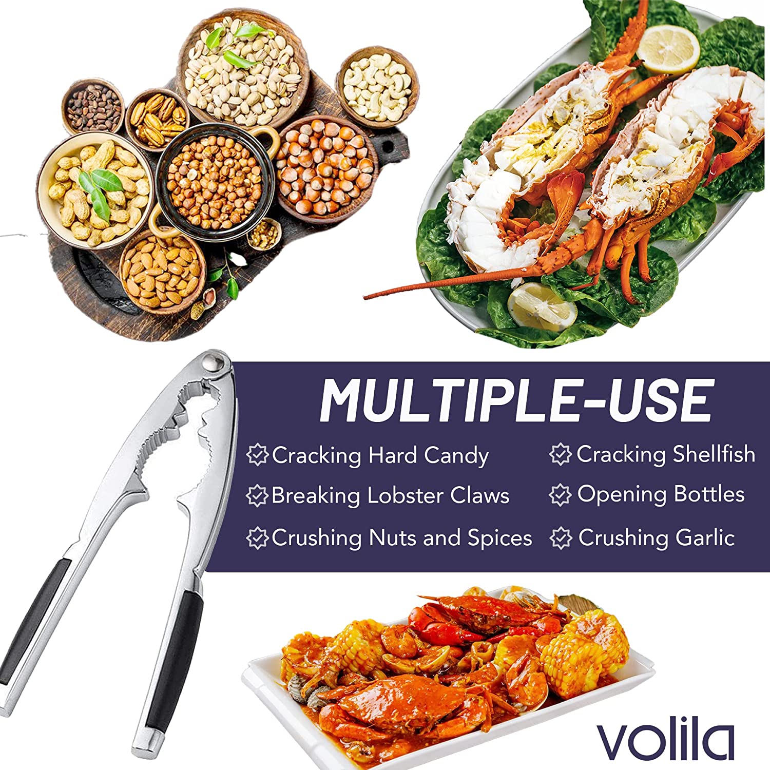 - 【 For Crustaceans 】 This includes lobsters, crabs, crayfish, and more. Not only does our nut cracker help open hard-shelled nuts, it's also a great tool to use when you're having seafood for dinner. Splurge yourself and your family with a luxurious dinner with Lobster Thermidor or Surf and Turf as the main course to celebrate that special day! Ramp up your dinner table setting with our fine lobster cracker tool. And make your guests wow!