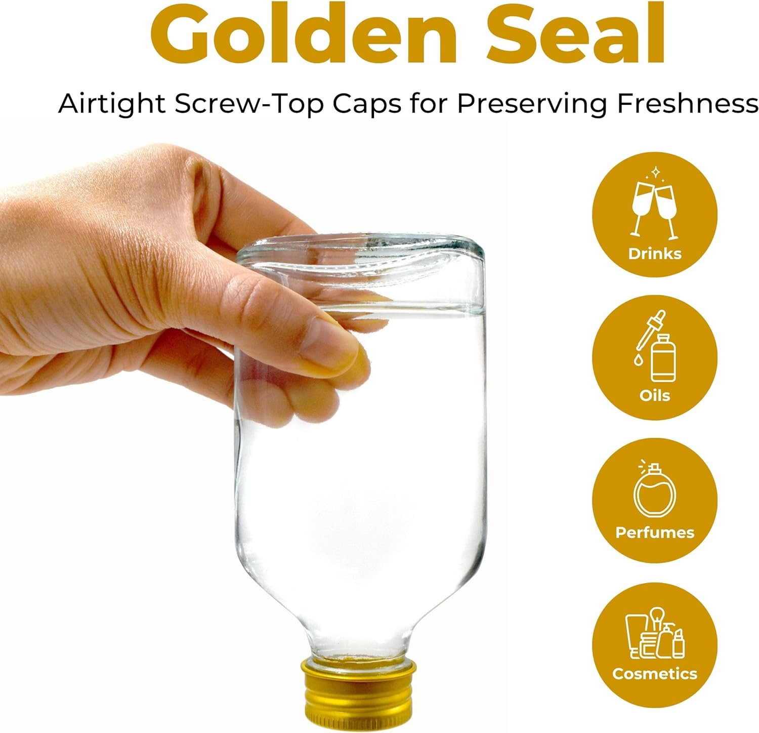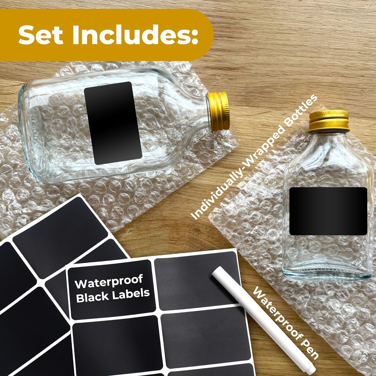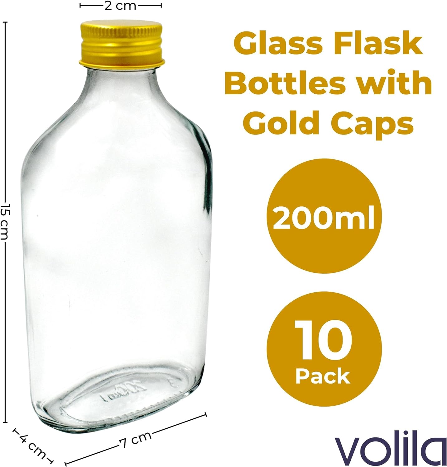 volila Glass Flask Bottles 100ml - Glass Bottles with Gold Screw Caps, Labels and Pen - Reusable Empty Glass Bottles for Gin, Home brews or Homemade Vinegar