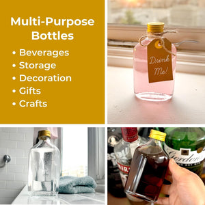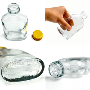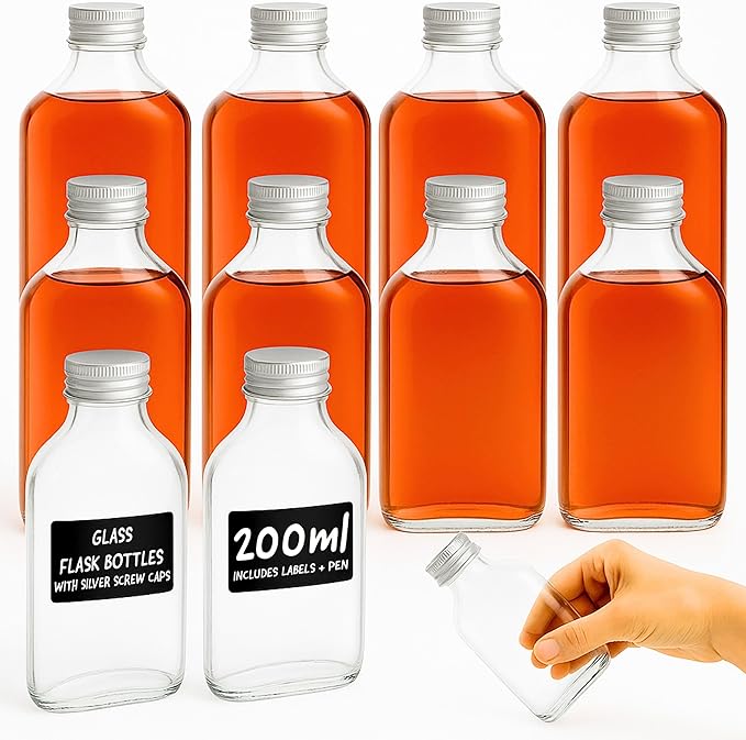 - π«γ Reusable Glass Flask Bottles γ The glass flask bottles with screw tops offer a sophisticated and functional storage solution for a diverse range of liquids. Meticulously crafted from premium clear glass, these bottles boast both durability and crystal-clear transparency, providing effortless visibility of their contents. Whether you're storing or transporting liquids, these spirit bottles combine style and practicality to meet your needs with finesse.